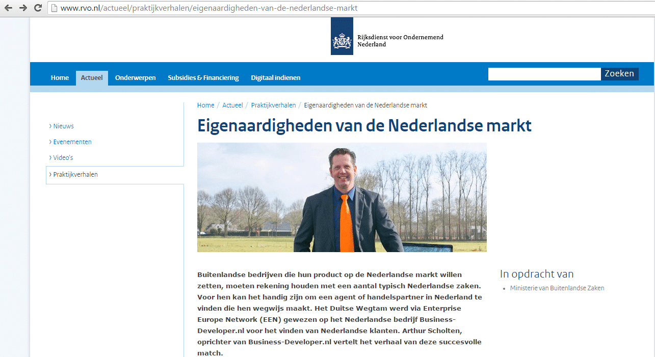 RVO is the Dutch government bureau for entrepreneurs. Through the help of RVO we have met several clients. One of our success stories has been written and published by the RVO. The article can be found HERE